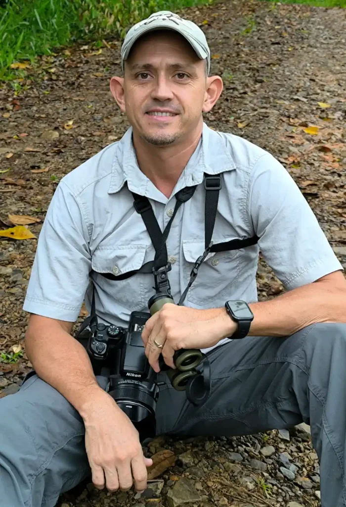 Erick C., born and raised in Costa Rica, is a seasoned bird watcher, naturalist and bird photography guide with more than 30 years of experience in the field. As a teenager, he spent time in Nebraska, where he became fluent in English and developed a cross-cultural perspective that enhances his work with international travelers. Erick’s guiding career began in Sarapiquí, interning at a local birding lodge, before completing training with Fundación Neotrópica and later expanding his expertise at La Selva Biological Research Station under the mentorship of leading tropical biologists.
