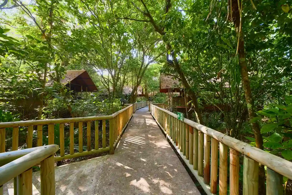 Individual wooden cabins make for a fun authentic experience. After a great day exploring the canals and forest trails, enjoy a refreshing swim in the pool.