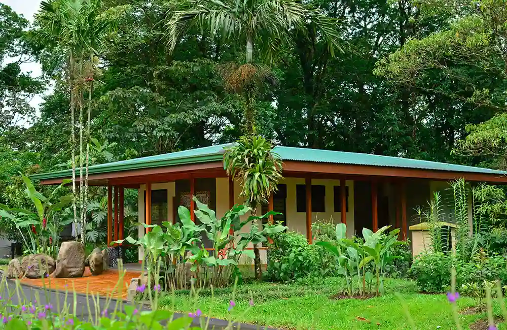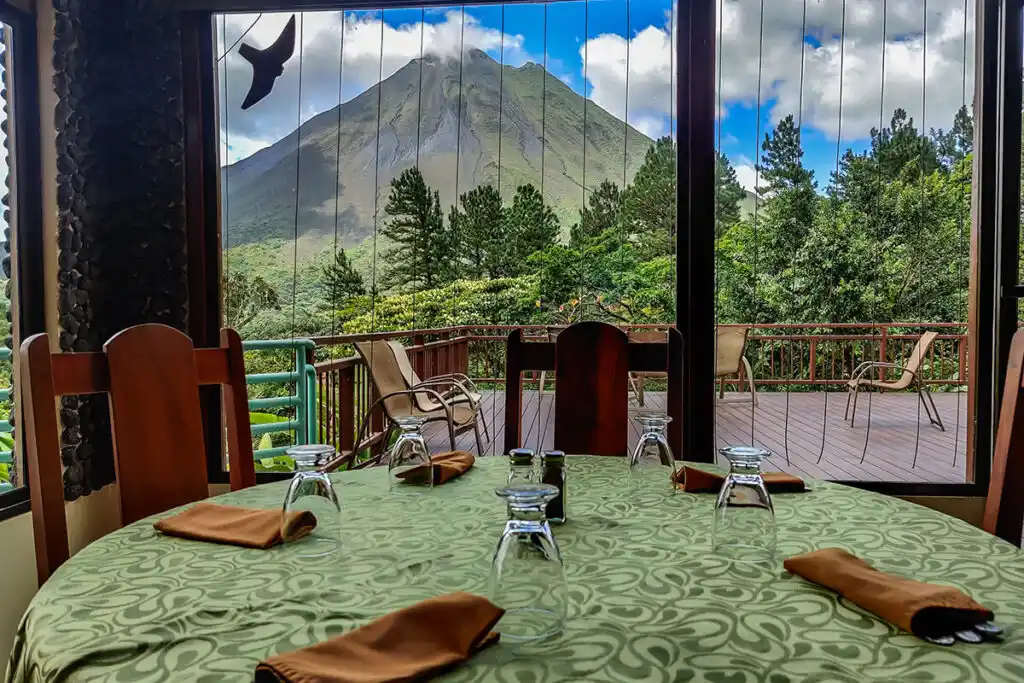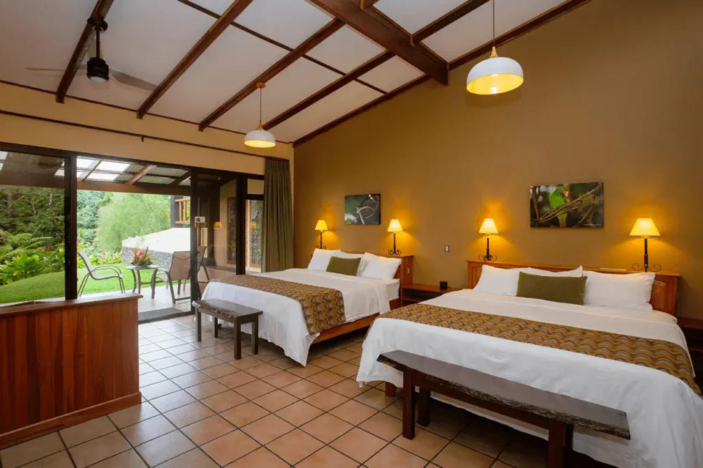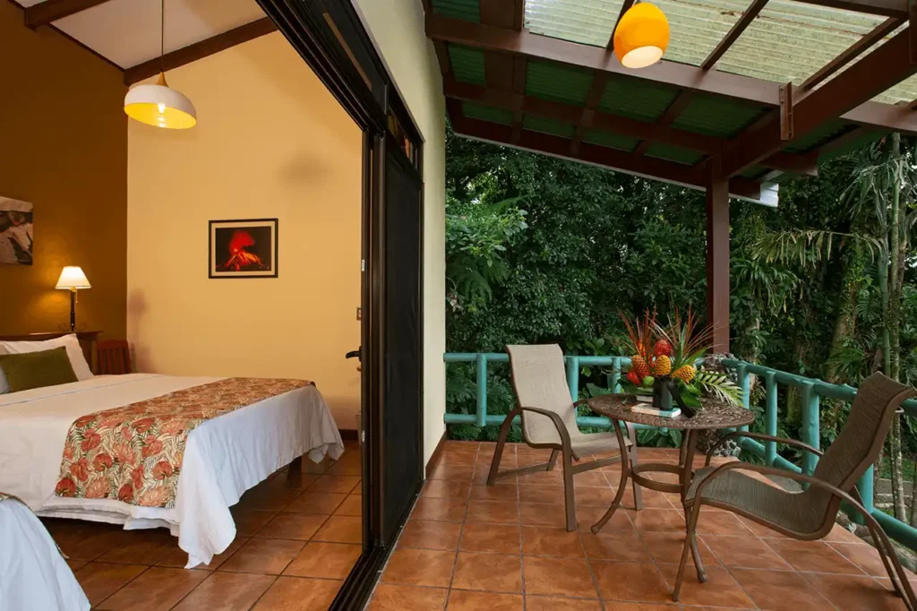 Considered one of the best birding lodges in Costa Rica and a great place to stay for nature lovers and birders in the Arenal area, the historic Arenal Observatory Lodge & Spa offers 48 comfortable hotel rooms in various buildings spread over the property. Enjoy delicious meals in the lodge restaurant and enjoy the floor-to-ceiling windows for gazing at the Arenal Volcano and Lake Arenal. Be sure to take time to visit the huge observation deck located just outside the restaurant. The views are amazing, plus you will have front row seats to the many bird feeders located throughout the gardens. Bring your binoculars!