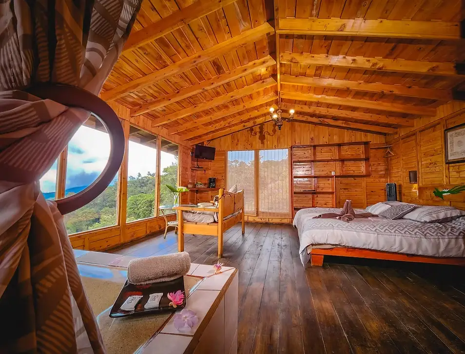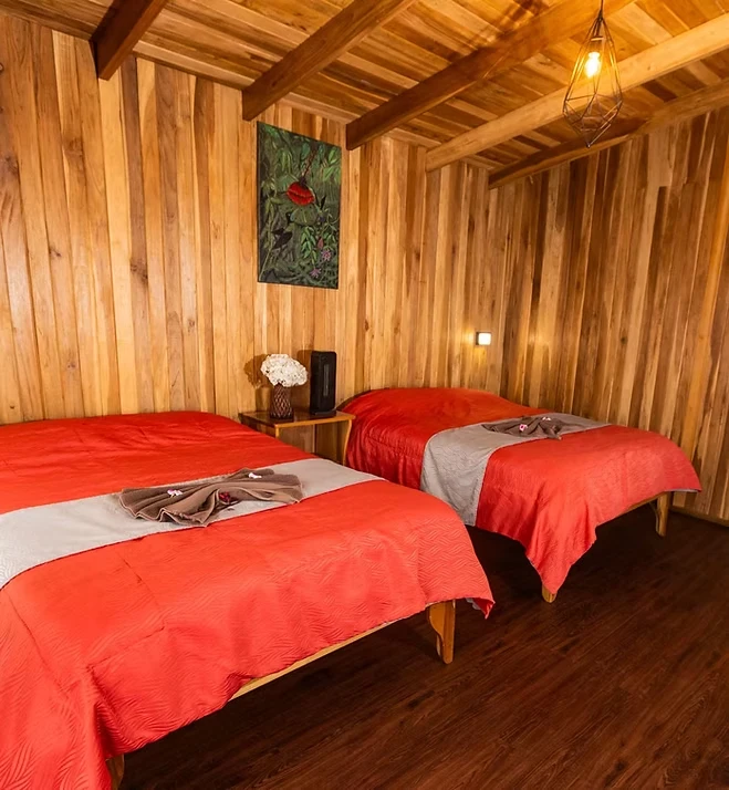 Accommodations are rustic yet comfortable, with cozy private cabins offering forest views, comfortable beds, hot water showers, and a peaceful atmosphere. Due to the cool mountain climate, air conditioning is not needed, and Wi-Fi is available in common areas. Laundry service is offered for an additional fee. After a day in the field, guests can enjoy panoramic views over the misty canopy from the lodge’s dining area, which serves hearty meals in a relaxed, mountain-lodge setting.