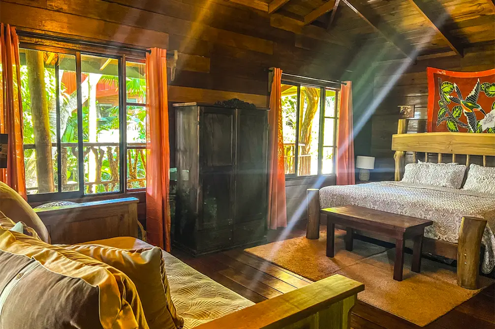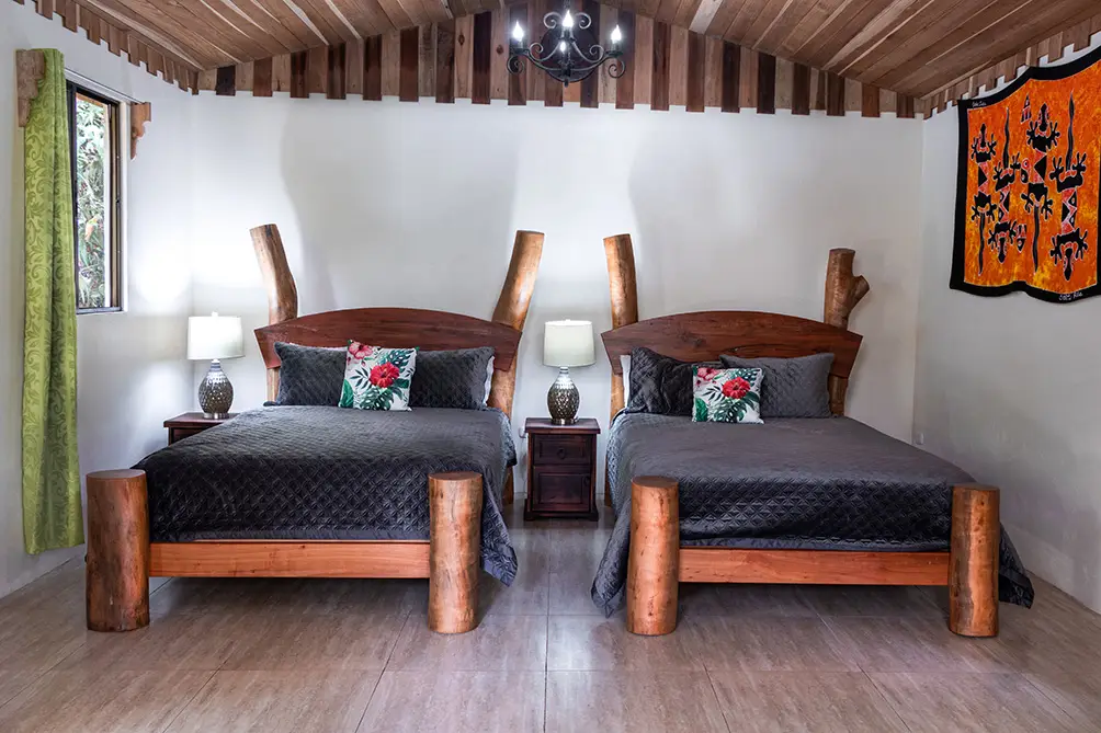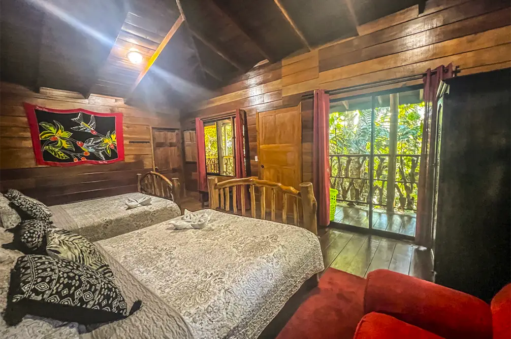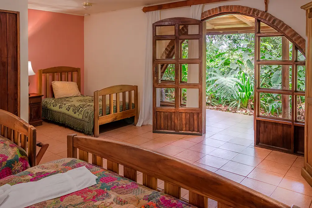 Enjoy the large, open upstairs balcony where you can watch a huge array of hummingbirds zoom through the garden, see tanagers and honeycreepers visiting the feeders, and view the distant smoking Tenorio volcano.