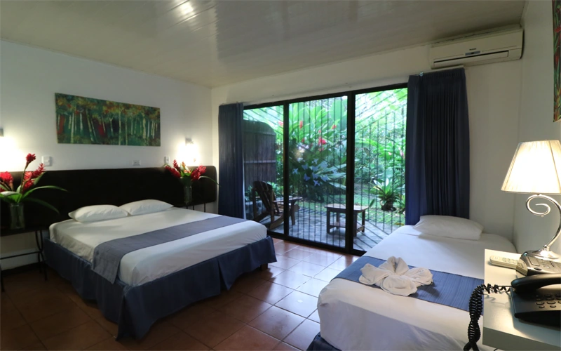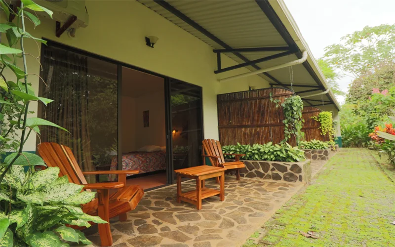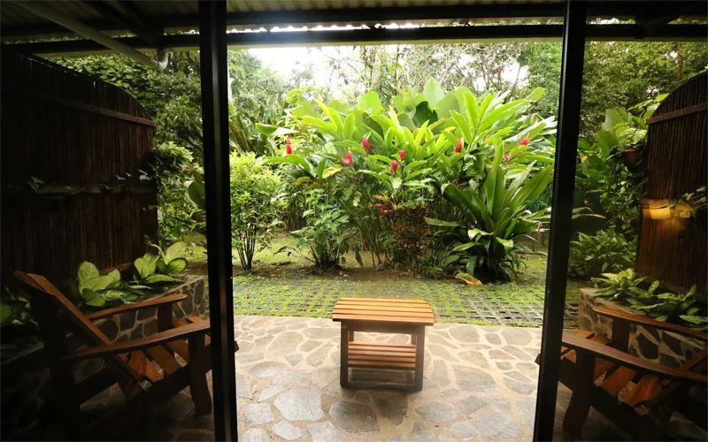 Simple yet cozy and comfortable guest rooms are located in a long building at ground level, they are surrounded by rainforest and an impressive variety of tropical flowers.